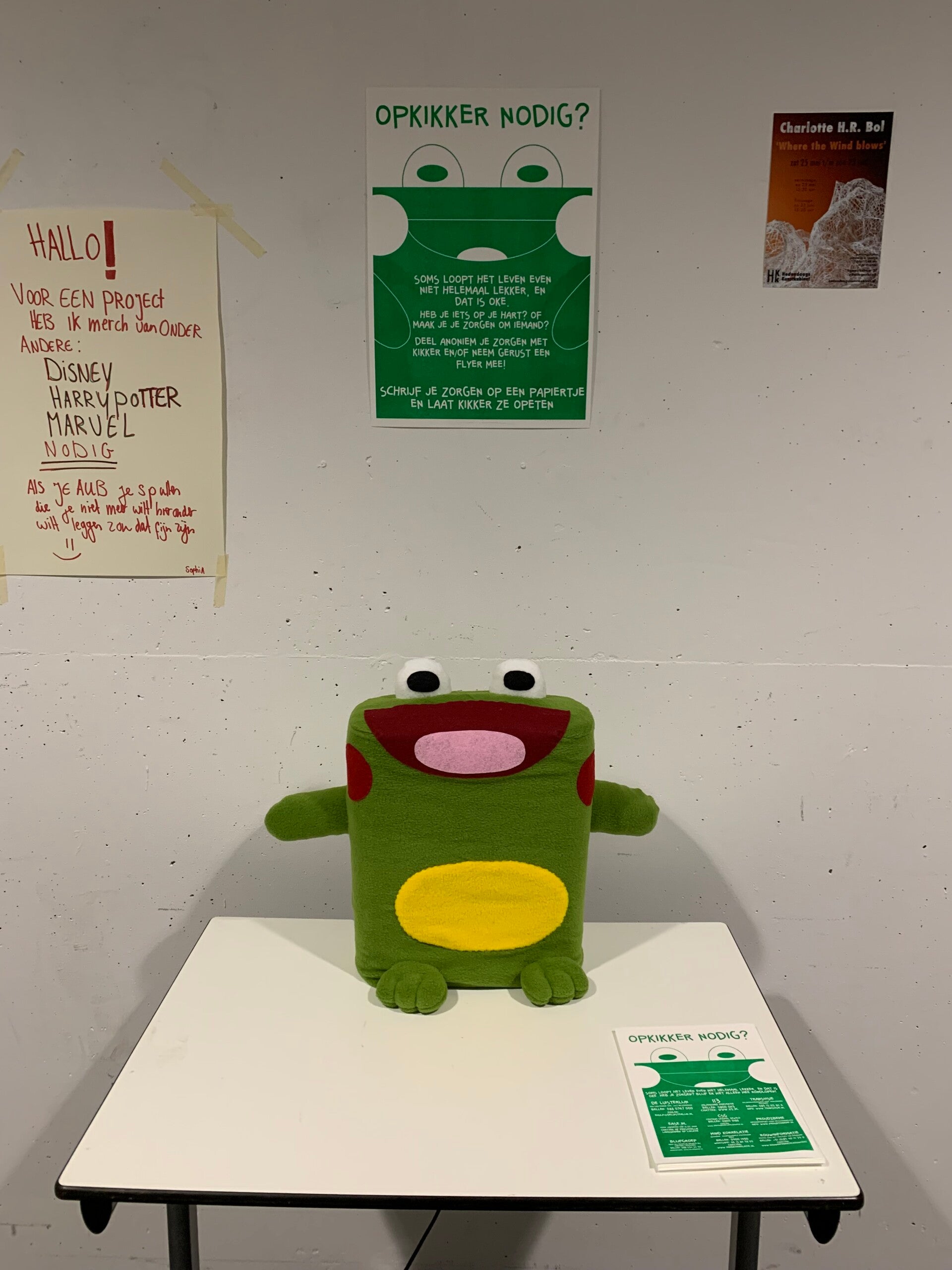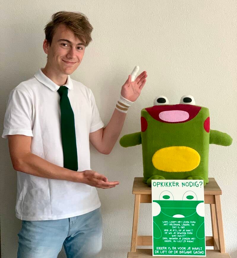 Project: Opkikkertje is een project om studenten die last hebben van mentale problemen of zorgen hebben op een luchtige manier te helpen. In de kikker zit een papierversnipperaar waarin studenten hun opgeschreven zorgen kunnen laten opeten door de kikker. Op die manier kunnen ze hun zorgen van zich af schrijven en anoniem delen met de kikker zonder dat andere mensen ze zullen veroordelen.